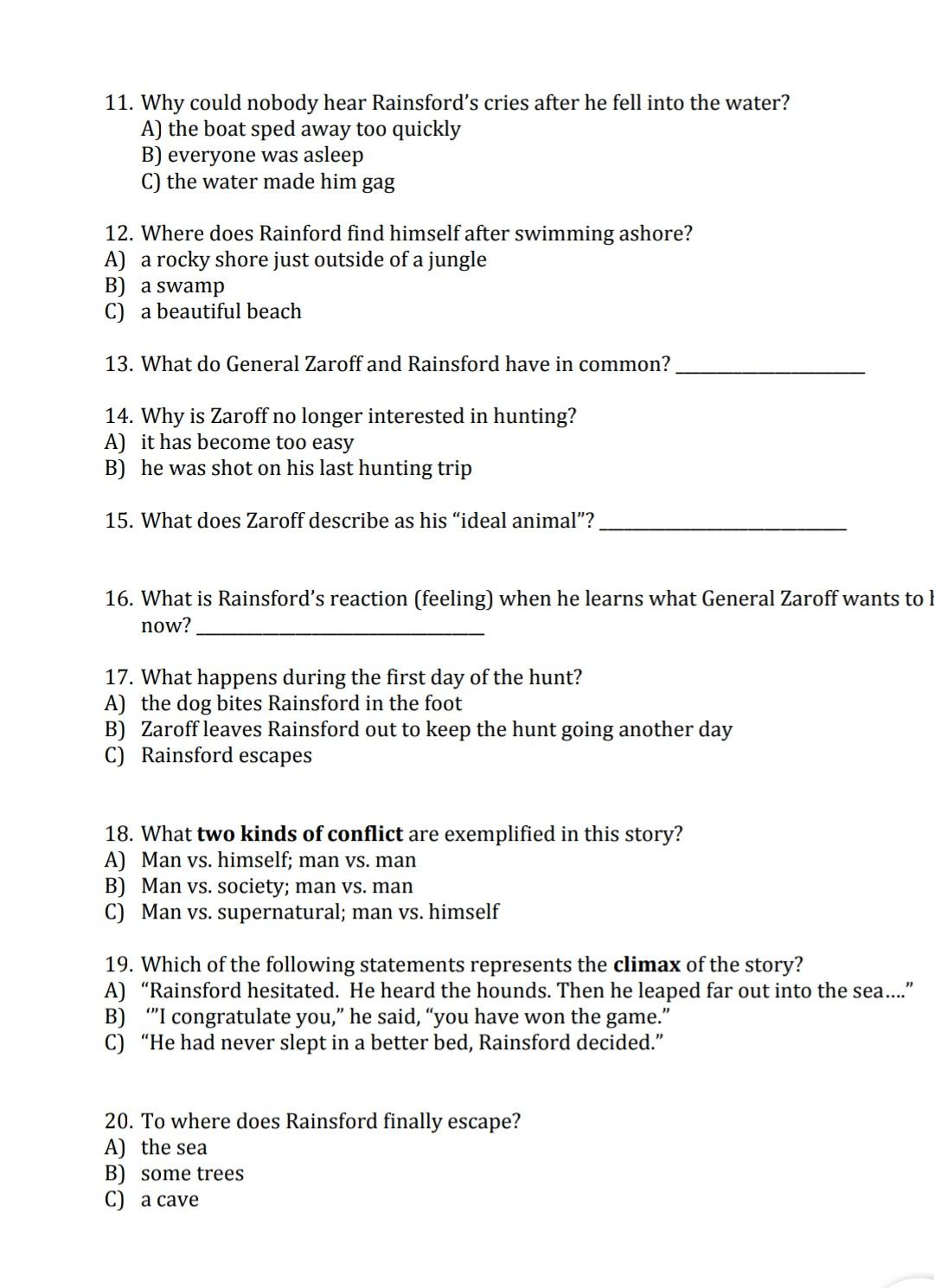 The Most Dangerous Game Story Questions